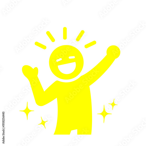 Fototapeta premium キラキラと輝く達成感の人物シルエット(黄色)
