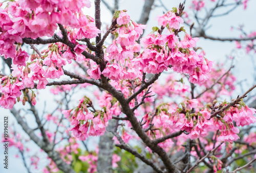 Obraz premium 沖縄に咲く紅いヒカンザクラ、桜、寒緋桜