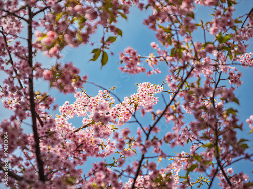 Obraz premium 春の息吹。見上げる空を彩る満開の河津桜