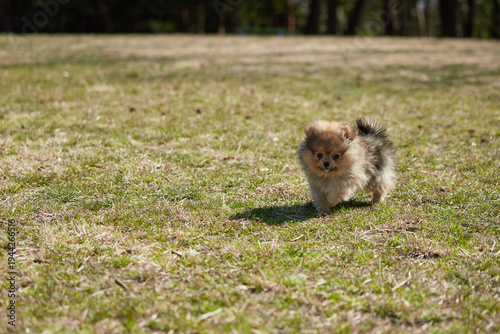 © zheng qiang, Obraz premium 春の公園で楽しく遊んでいるポメラニアンの子犬の様子
