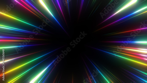 © KOTI, Fototapeta premium カラフルな光の集中線の枠のエフェクト背景