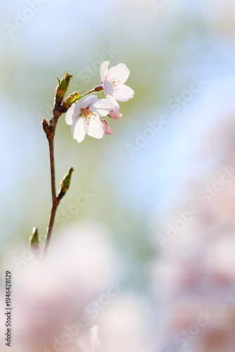 Obraz premium 春の日差しを浴びて咲く清楚なソメイヨシノ