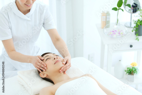 Obraz premium エステシャンとベッドに寝転ぶ女性