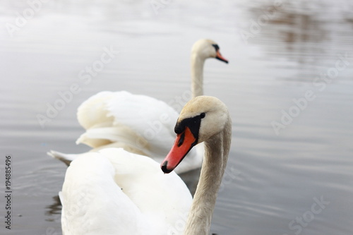 © heshixin, Fototapeta premium Пара лебедей в озере в парке