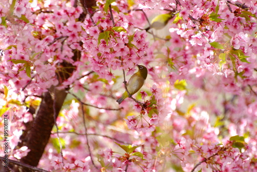 © orihashi photo, Obraz premium 河津桜にメジロ