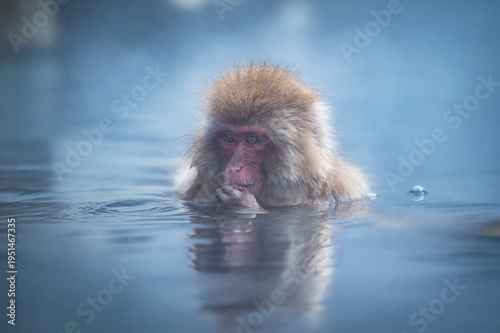 Obraz premium 冬の長野県、温泉に入り、癒やされる猿