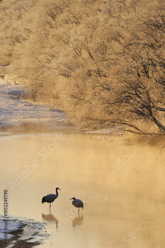 © 愛 高行, Fototapeta premium 樹氷とタンチョウのつがい(北海道・鶴居村)