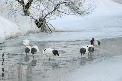 © 愛 高行, Fototapeta premium 塒の川で休むタンチョウ(北海道・鶴居村)