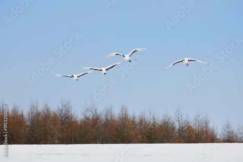 © 愛 高行, Fototapeta premium 雪原を飛ぶタンチョウ(北海道・鶴居村)