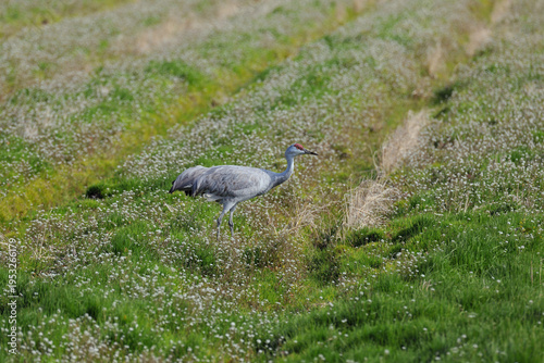 Fototapeta premium 花畑とカナダヅル(鹿児島県・出水市)