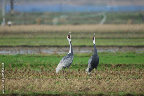 © 愛 高行, Fototapeta premium マナヅルの鳴き合い(鹿児島県・出水市)