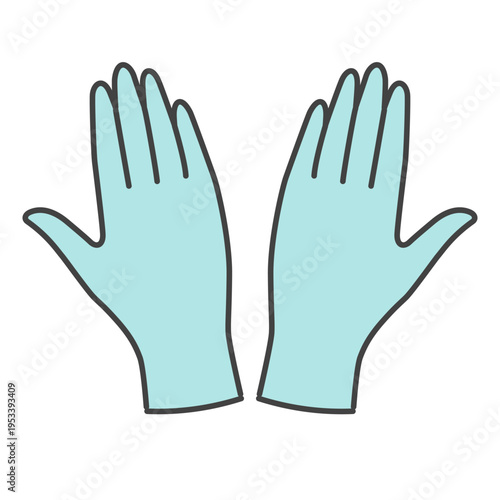 © COCONUT-O, Obraz premium 両手を広げた医療用使い捨てグローブ 水色 シンプル