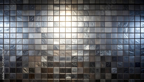 © 健 板澤, Naklejka premium 光沢のある銀色のタイル、モザイクの背景画像