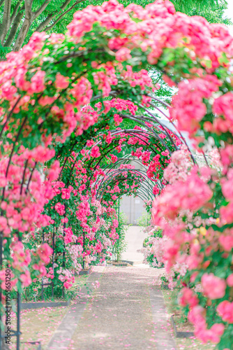 Fototapeta premium 5月 母の日 ピンクの薔薇のアーチトンネル