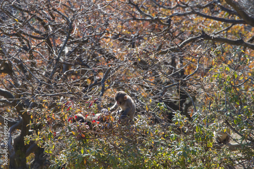 Fototapeta premium 子猿猿と秋の風景