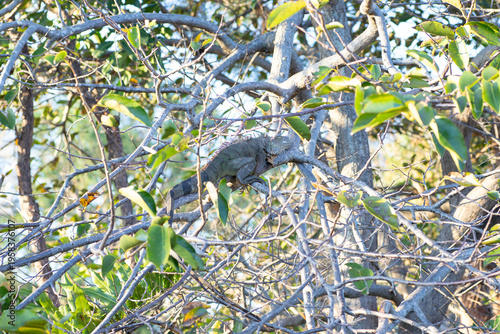 Fototapeta premium 木の上で眠るグリーンイグアナ。長閑な風景