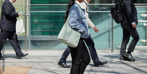 © zheng qiang, Obraz premium 春の名古屋の繁華街で歩く男性サラリーマン達の姿と女性観光客の姿