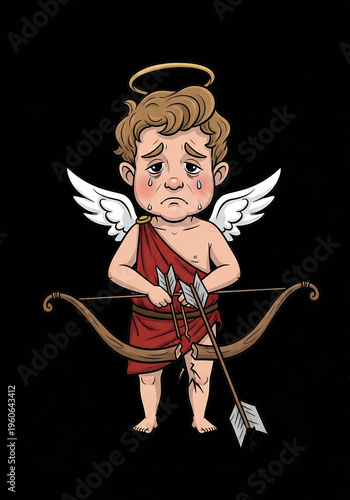 Obraz premium 悲しいキューピッド、弓矢を持つイラスト