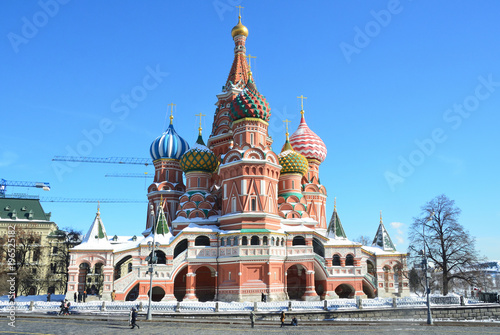Obraz premium Храм Василия Блаженного в Москве ранней весной на фоне синего неба