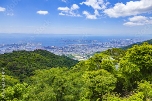 Obraz premium 六甲山頂から眺める新緑と神戸の街