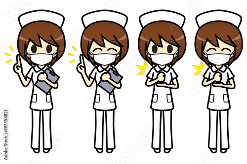 © りふらん, Naklejka premium シンプルキャラクター 会話・表情イラスト集 看護師(パンツスタイル・マスク付き) 女性 要点・納得