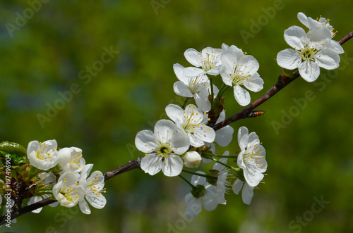 Obraz premium Вишневое дерево цветет белыми цветами.