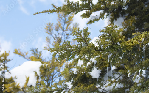 Obraz premium 冬 木 雪 空 素材