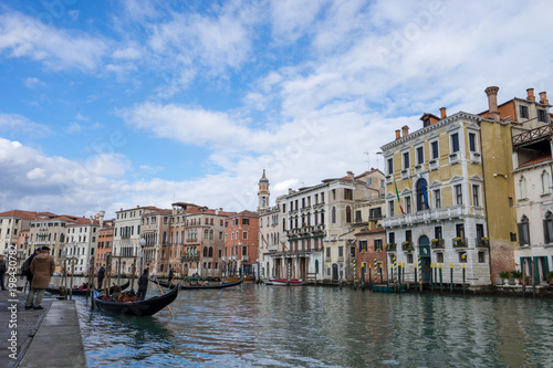 Obraz premium ベネチアのゴンドラとカナル・グランデ沿いの町並み