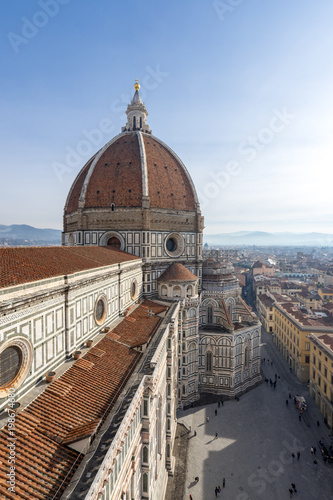 Obraz premium ジョットの鐘楼から見るサンタ・マリア・デル・フィオーレ大聖堂とフィレンツェの町並み