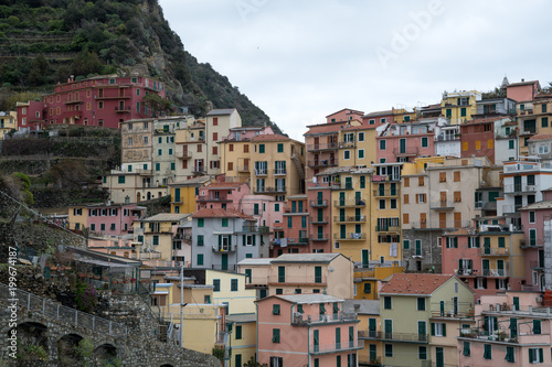 Obraz premium チンクエテッレ~険しいリグーリア海岸の5つの村(イタリア・リグーリア州) マナローラのカラフルな家並み
