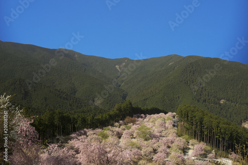 Naklejka premium 桜咲く山里の春