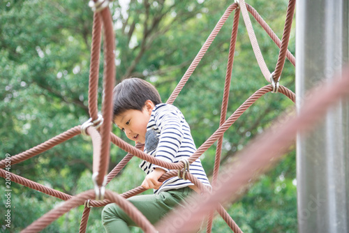 © tatsushi, Obraz premium アスレチックで遊ぶ男の子