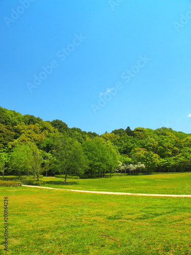 Obraz premium 小道のある草原と林風景