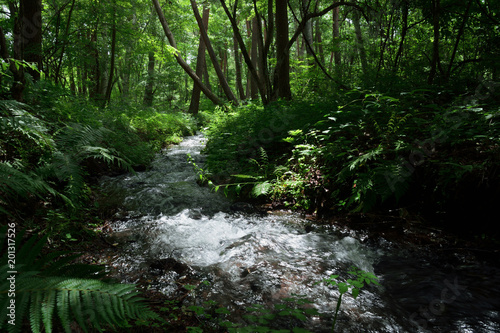 © askaflight, Obraz premium 夏の緑溢れる森の中の小川