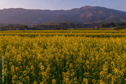 © yoshida hirofumi, Fototapeta premium 菜の花畑に黄色い花がいちめんに咲いた夕暮れ前
