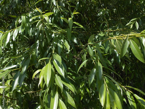 © Ольга Мордасова, Obraz premium зеленое дерево ивы в летний день.