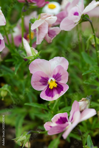 © mr, Naklejka premium ピンク色のパンジーの花のアップ