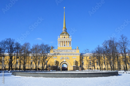 © irinabal18, Fototapeta premium Александровский сад перед зданием Адмиралтейства в солнечный зимний день, Санкт-Петербург, 18 век