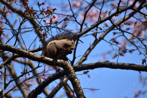 © mayudama, Obraz premium 桜の木の上のエゾリス