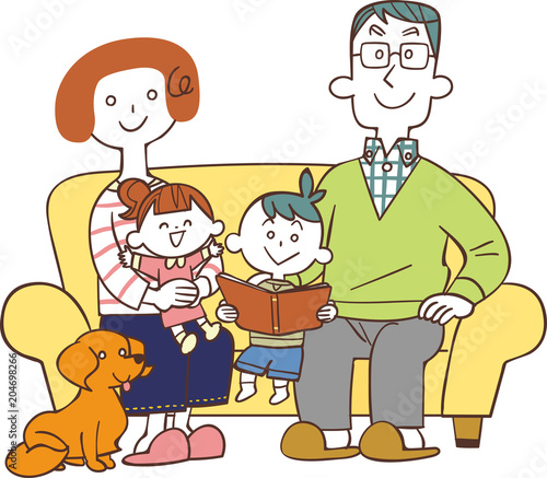 © haru_natsu_kobo, Fototapeta premium 家族がソファーに座っているイラスト