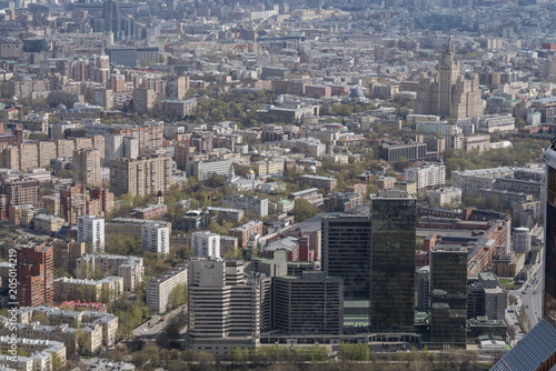 Fototapeta premium Панорама Москвы, район Пресненский, с крыши небоскреба.