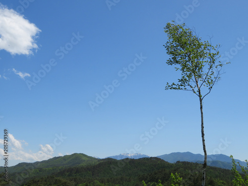 Obraz premium 日本の中央アルプスと白樺