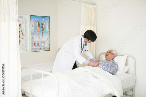 © Monet, Obraz premium 若い医師と、病室のベッドで横になっている高齢者の患者。