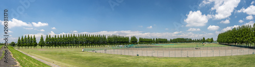 © iwao, Obraz premium メタセコイアの並木に囲まれたグラウンドに