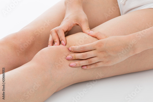 Fototapeta premium 膝の上の脂肪をつまむ女性