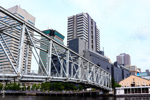 Obraz premium (東京都ー都市風景)天王洲の川沿いにかかる鉄橋1