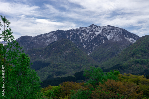 Naklejka premium 春の雨飾山