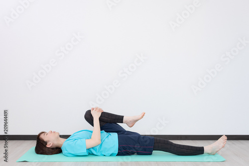 © stockfoto, Fototapeta premium マットの上でストレッチする女性