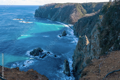Obraz premium 【岩手県田野畑村】厳冬期の鵜の巣断崖は足が竦むような断崖絶壁