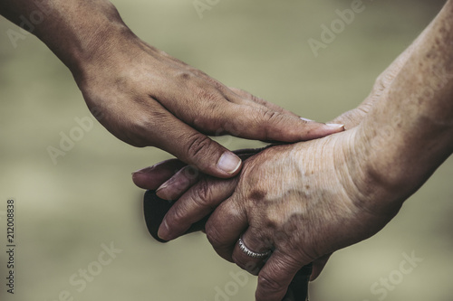 © beeboys, Fototapeta premium 杖を持つ女性に手を添える女性